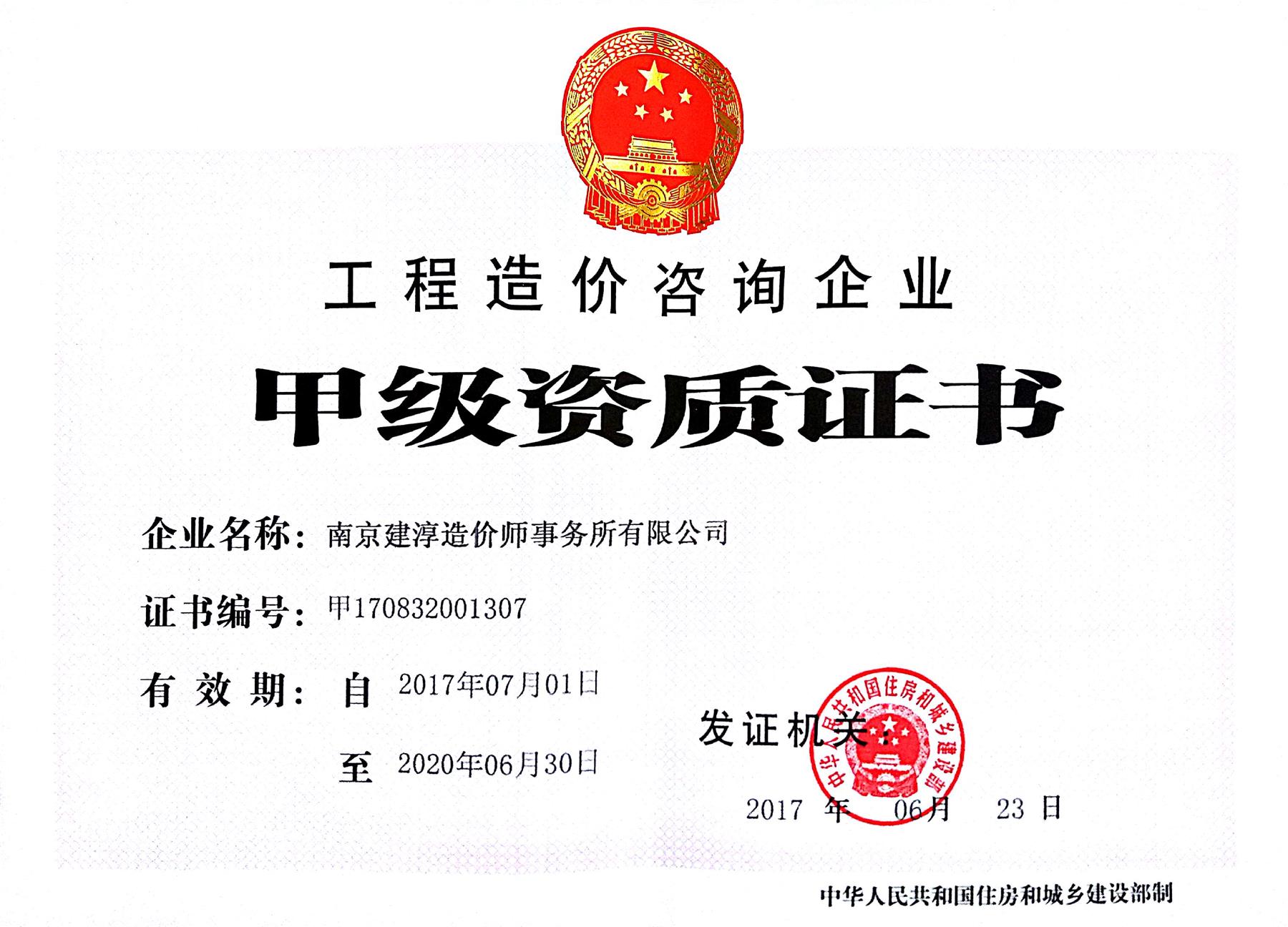 工程造價(jià)咨詢企業(yè)甲級資質(zhì)證書