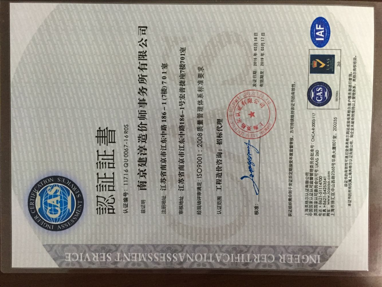 經(jīng)現(xiàn)場評審滿足:ISO9001:2008質(zhì)量管理體系標(biāo)準(zhǔn)要求 認(rèn)證范圍:工程造價(jià)咨詢、招標(biāo)代理 有限期至2019年3月17日【詳細(xì)】
