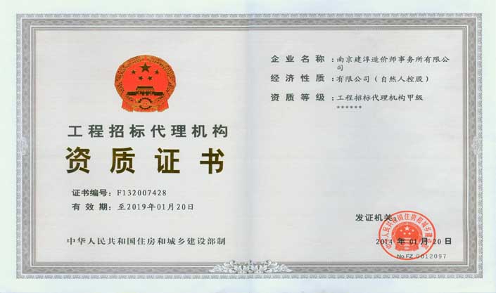 工程招標(biāo)代理機(jī)構(gòu)甲級資質(zhì)證書
